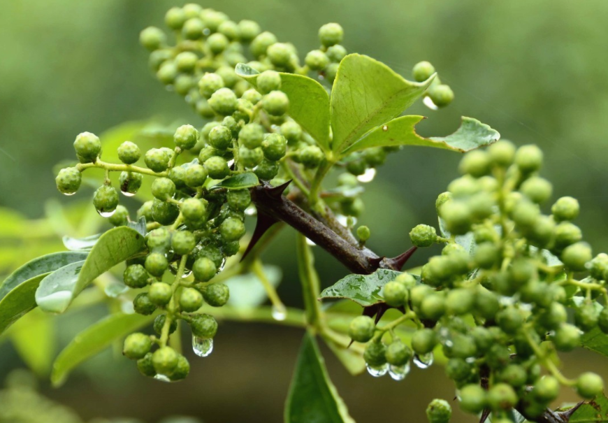 ? ? ? 由于花椒多子,香味綿長,比喻多子多孫、情侶之間感情悠遠(yuǎn)綿長。在《詩經(jīng)》中記載周朝的時候,人們將花椒當(dāng)作定情之物。姑娘在綠樹茵茵中翩翩起舞,小伙子被姑娘的舞姿吸引,手捧一束花椒來到心愛的姑娘面前,表示小伙子向姑娘示愛。